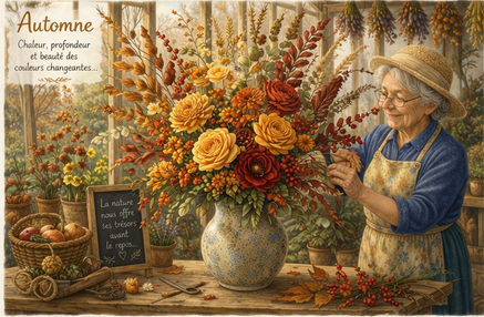 Quand les jours raccourcissent, Mamie Jeanne compose des bouquets avec les trésors du jardin et de la nature.